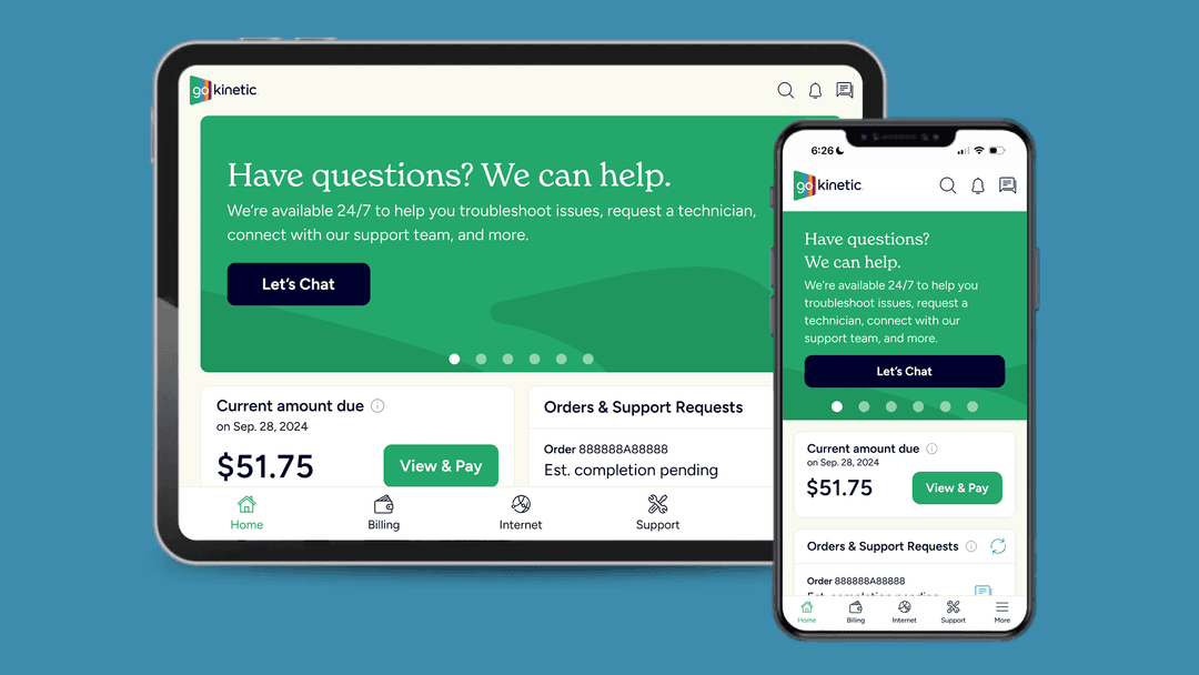 Effortlessly manage your services, get support, pay your bill, and more — all in one place. You’re in control of your Kinetic experience anytime, anywhere.
